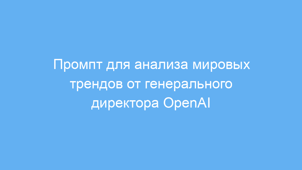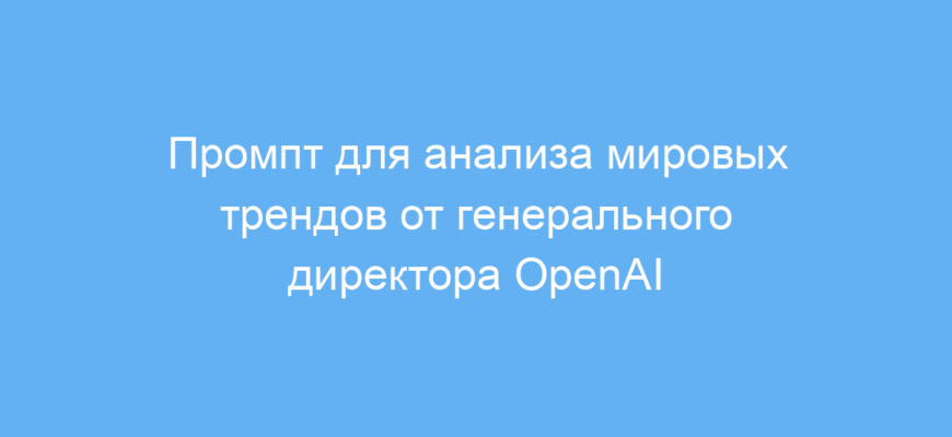 Работает промпт так: пользователь просит нейросеть представить себя как генерального директора OpenAI с доступом ко всем современным данным. Это позволяет искусственному интеллекту структурированно и ясно раскрыть возможные изменения в мире, опираясь на ключевые знания и источники. В результате получается последовательный анализ, который помогает принимать решения и планировать будущее.