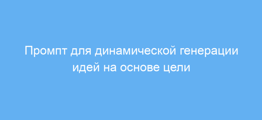 Данный промпт предназначен для тех, кто ищет эффективный способ быстро создавать и отбирать идеи, ориентируясь на исходную задачу или цель. Он помогает системно подходить к генерированию идей, что особенно полезно при работе над проектами, маркетингом, обучением и творческими задачами.