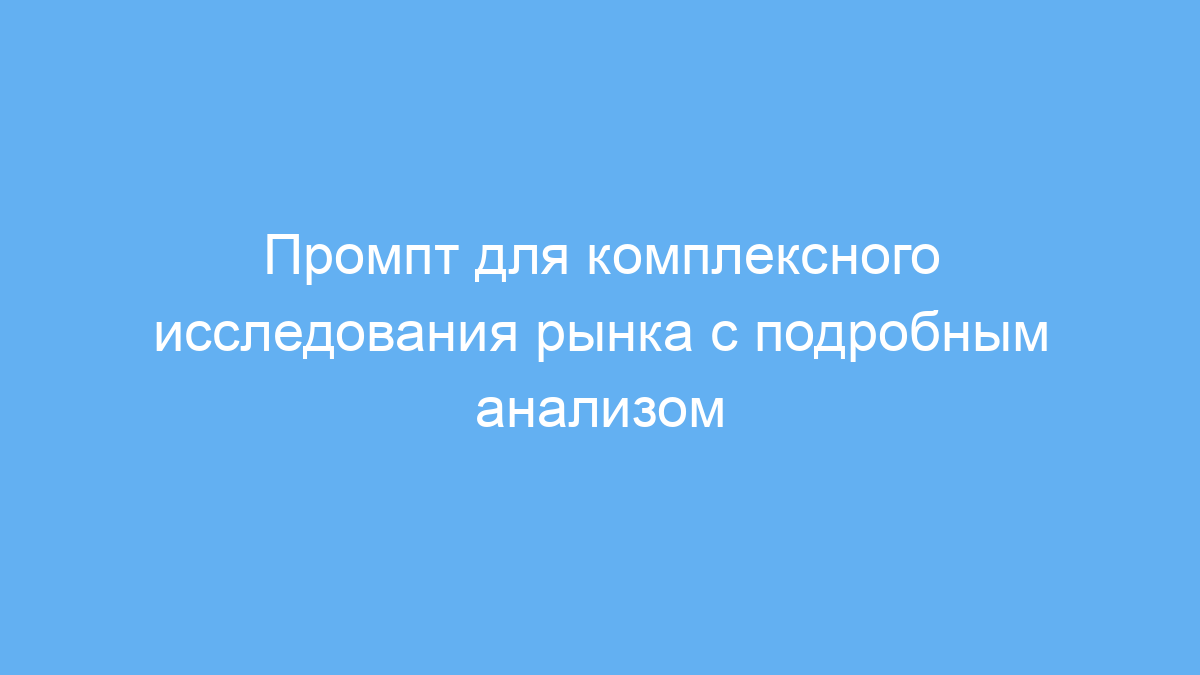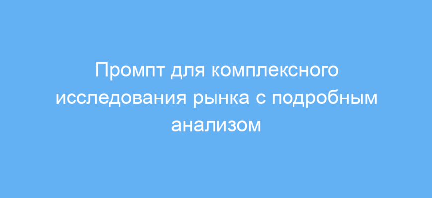 Использование этого промпта позволит быстро получить комплексный, структурированный рыночный анализ с детальным описанием целевой аудитории и конкурентов. Это помогает принимать обоснованные маркетинговые решения без необходимости проводить самостоятельный долгий сбор и обработку информации.