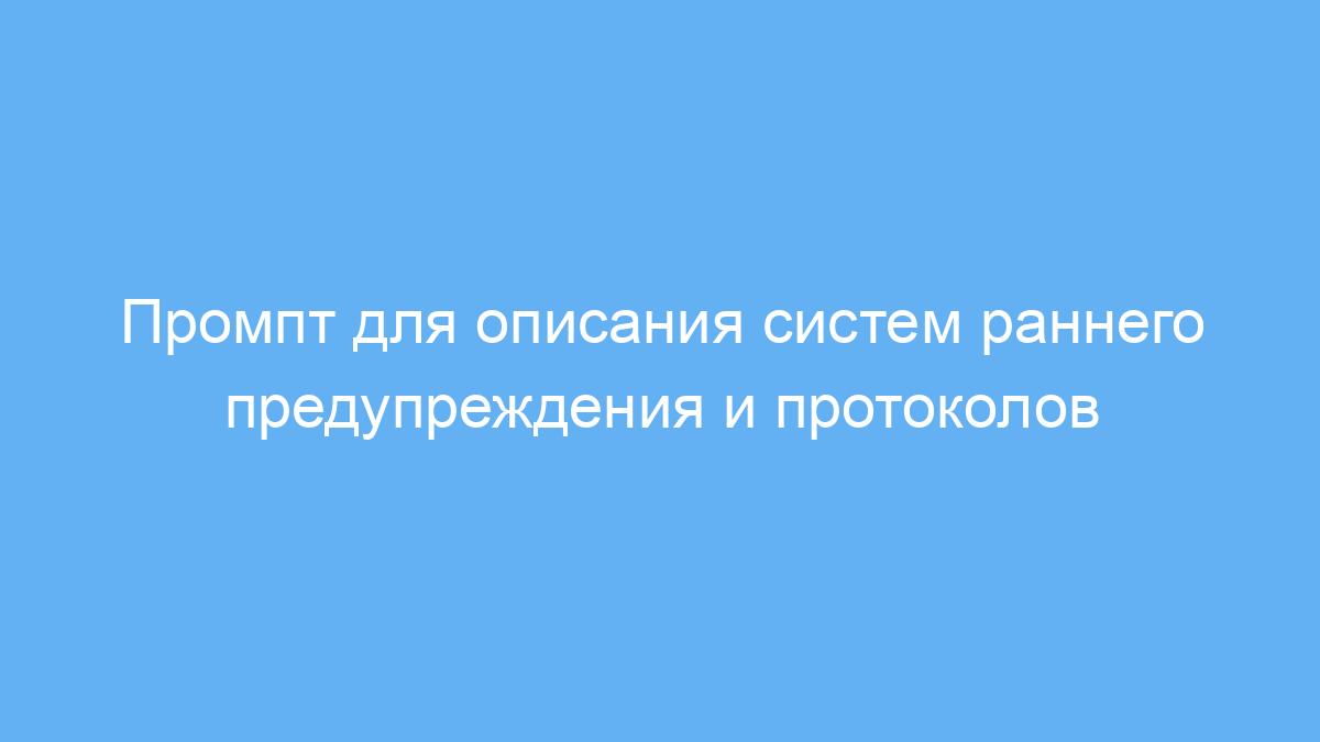 Данный промпт помогает быстро получить полное и структурированное описание систем раннего предупреждения и связанных с ними протоколов. Это значительно облегчает процесс исследования, разработки и подготовки отчетности, экономя время и силы пользователя.