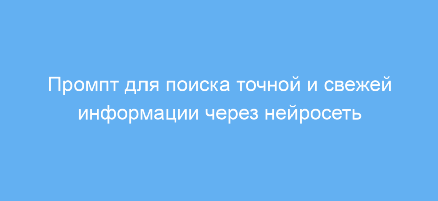 Этот промпт предназначен для пользователей, которые хотят получить актуальную и достоверную информацию по любой теме с помощью нейросети. Он особенно полезен для студентов, исследователей, контент-мейкеров и специалистов, которым важно быстро находить точные данные и ссылки на проверенные источники.