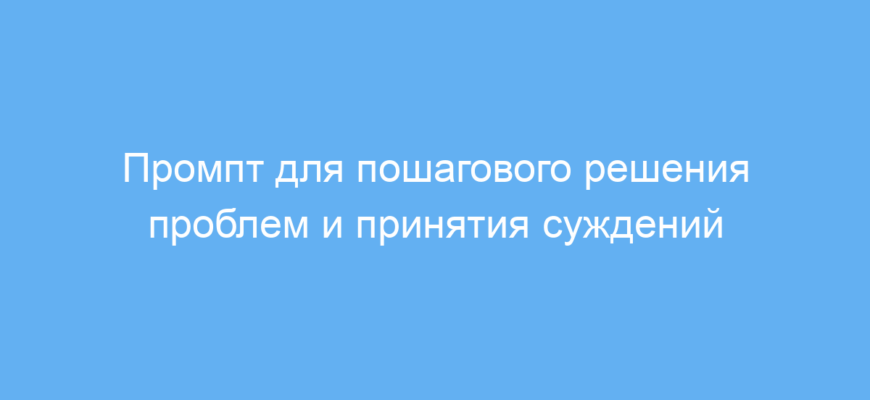 Промпт решает проблему поверхностного анализа и поспешных решений. Его использование обеспечивает последовательный подход, начиная с уточнения ситуации и заканчивая формированием надежного ответа на основе проверенных данных и собственного понимания. Это снижает вероятность ошибок и улучшает качество решений.