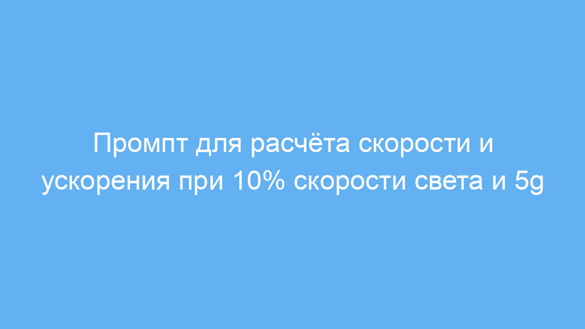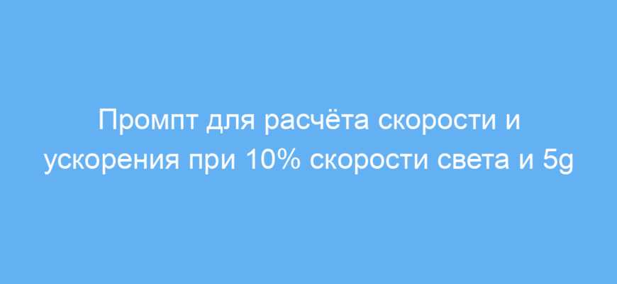 Принцип работы прост: задана скорость (10% от скорости света) и максимум ускорения (5g), промпт помогает определить соответствующее значение скорости и параметры движения, учитывая ограничения организма.