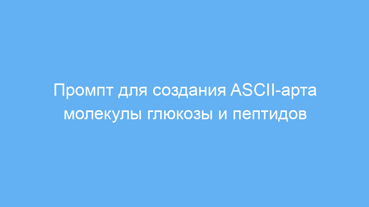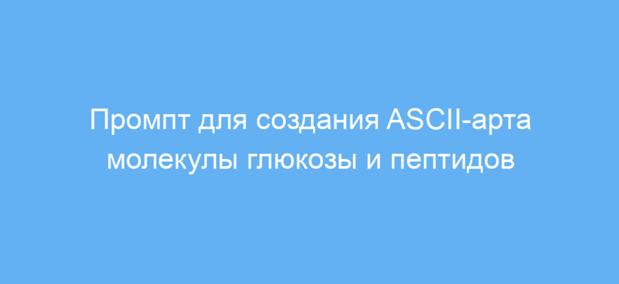 Промпт формирует текстовое описание и структуру молекулы глюкозы, различных пептидов, а также демонстрирует их взаимодействие. Нейросеть анализирует запрос и преобразует информацию в символы ASCII, создавая схематичный рисунок, понятный для просмотра в текстовом редакторе или терминале.