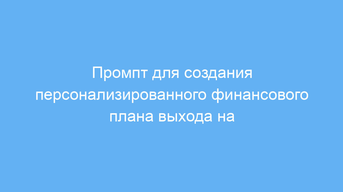 Промпт работает просто: пользователь вводит свои основные финансовые показатели — возраст, сумму накоплений, доход и наличие долгов. На основе этих данных нейросеть предлагает персонализированные стратегии, которые помогут максимально эффективно использовать ресурсы и приблизить желаемый возраст выхода на пенсию.