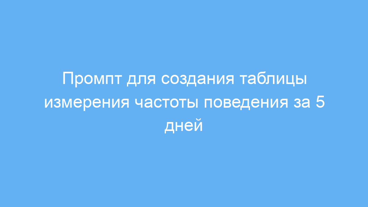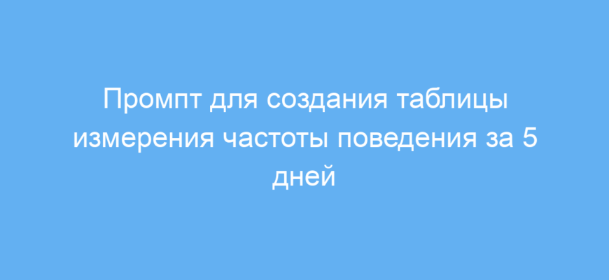 Данный промпт упрощает и ускоряет создание удобных таблиц для мониторинга и анализа поведения в реальном времени. Благодаря четкой структуре с датами и временными интервалами вы сократите время на подготовку отчетов и повысите точность учета наблюдений.