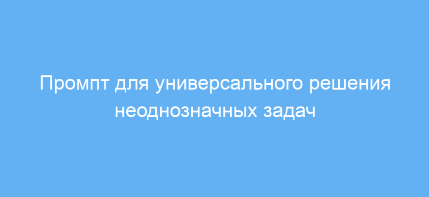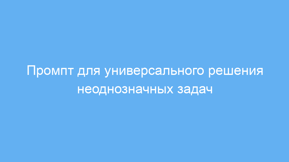 Этот промпт помогает выстроить чёткую и универсальную логику решения сложных вопросов с множеством неизвестных. Он позволяет организовать усилия, снизить неопределённость и получить структурированные результаты, которые легко адаптировать для различных сфер. Использование промпта экономит время и повышает качество решений при работе с данными любого типа.