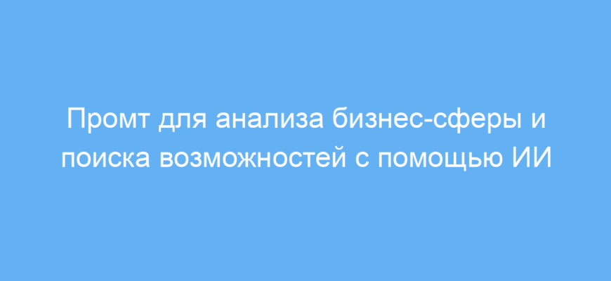 Промт помогает быстро получить целостное представление о бизнес-сфере, найти малоизвестные перспективные ниши и возможности применения искусственного интеллекта. Это экономит время и упрощает процесс поиска идей для развития бизнеса или проектов.