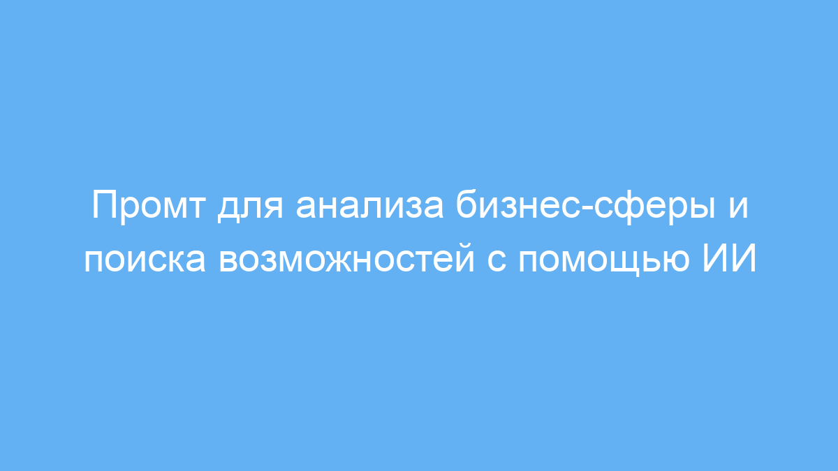 Main benefit: Быстрый и структурированный анализ бизнес-сферы с фокусом на новые возможности и технологии ИИ.