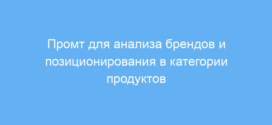 Этот промт предназначен для маркетологов, бренд-менеджеров, исследователей рынка и контент-специалистов, которым нужно быстро и креативно провести анализ брендов внутри определённой категории продуктов или услуг. Он помогает понять позиционирование игроков на рынке, их брендинг, маркетинговые сообщения и восприятие их потребителями.