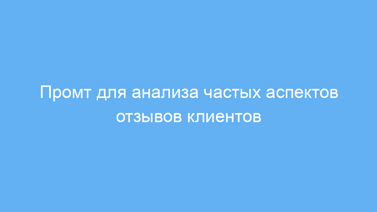 Проблема многих компаний в том, что отзывы часто бывают разрозненными и объемными. Этот промт позволяет на их основе сформировать структурированный список повторяющихся аспектов, включая частоту упоминаний и разделение по важным категориям. Это упрощает принятие решений и помогает улучшить продукт или маркетинговую стратегию.