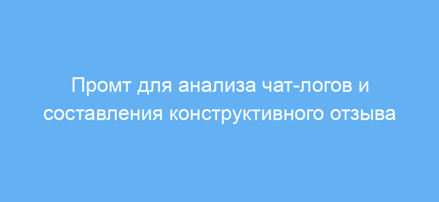 Используйте этот промт для анализа завершённых переписок или их фрагментов. Введите полный чат-лог, включая последнее сообщение, чтобы получить корректный и полный отзыв. Не передавайте промту устаревшую или неполную информацию, так как это может повлиять на качество анализа.