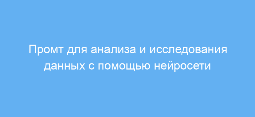 Промт работает так: он направляет ИИ на учет особенностей конкретных данных и целей анализа. Вы указываете тип данных и задачи, а нейросеть отвечает на вопросы, которые раскрывают важные инсайты и помогают принимать грамотные решения. Таким образом, промт облегчает сложный процесс исследования данных, делая его более структурированным и продуктивным.