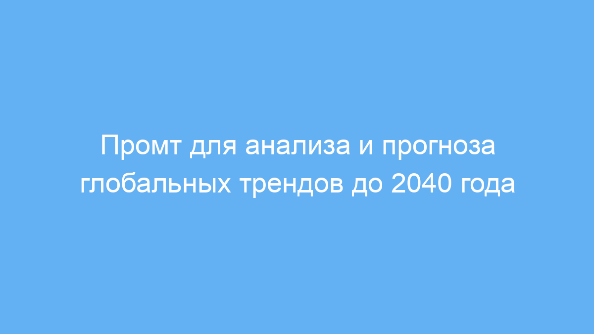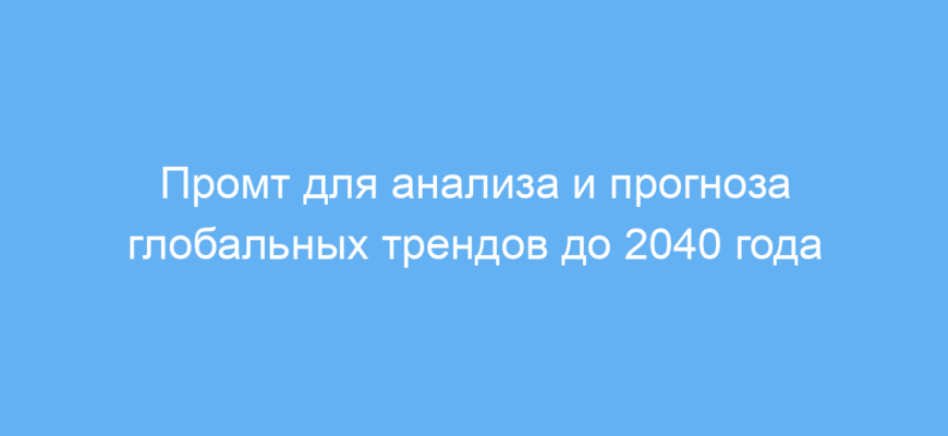 Данный промт экономит время на сбор и анализ информации из множества источников. Он позволяет быстро получить общий обзор и прогноз в интересующей области на период до 2040 года на основе актуальных и официальных данных. Такой инструмент полезен для качественной подготовки исследований и принятия решений, связанных с будущими трендами.