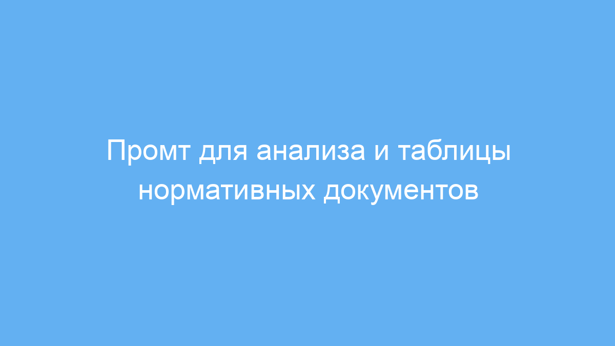 Этот промт создан для специалистов, работающих с нормативными актами и стандартами, например, для юристов, аналитиков по регуляторной разведке и специалистов по комплаенсу. Он помогает быстро структурировать информацию о нормативных документах, делая анализ удобным и понятным.