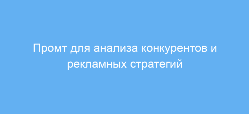 Работает промт следующим образом: вы указываете название конкурента, детали вашего продукта или услуги, а также целевую аудиторию. Искусственный интеллект анализирует доступную информацию, выделяет ключевые особенности рекламных кампаний конкурентов и сравнивает их с вашим предложением. В итоге вы получаете детальный отчет с рекомендациями и обзором сильных и слабых сторон.