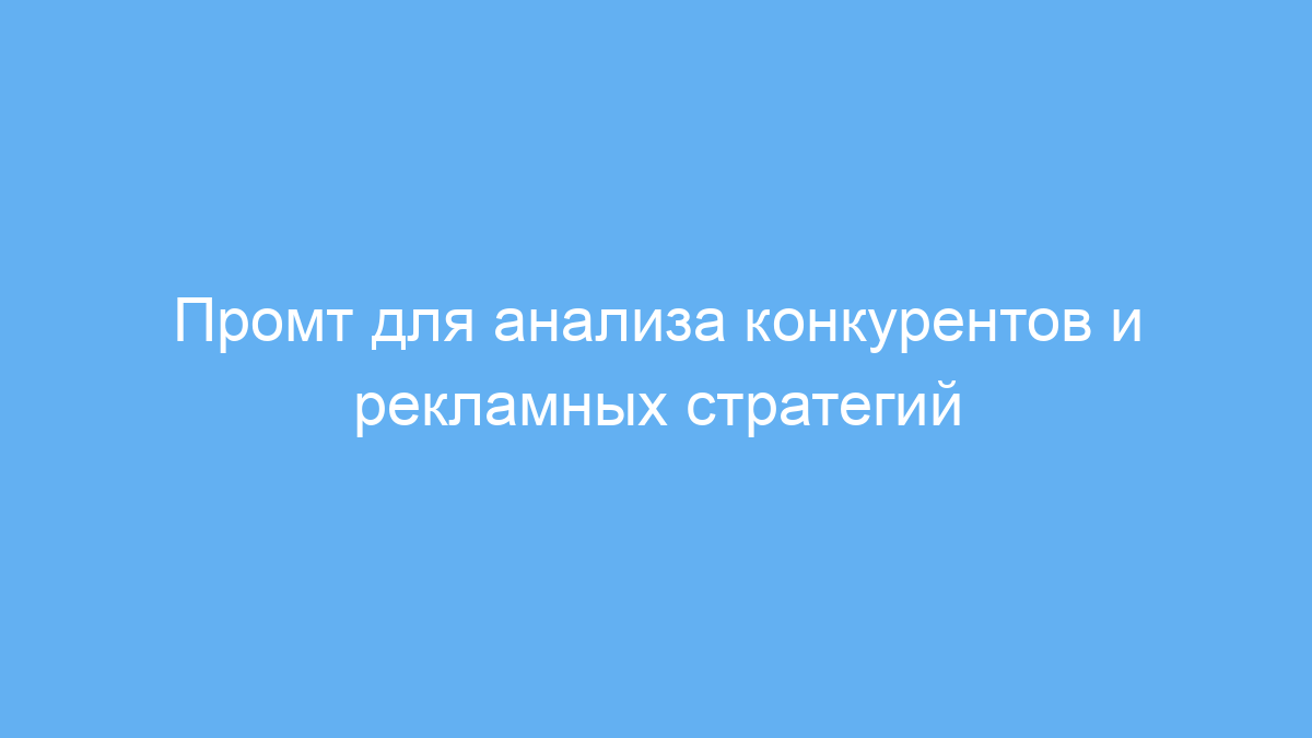 Данный промт помогает систематизировать и ускорить сбор информации о конкурентах. Он экономит время, повышает качество маркетинговых исследований и помогает выявить эффективные рекламные решения. В итоге вы получаете четкое понимание, как улучшить собственное предложение и повысить конкурентоспособность.