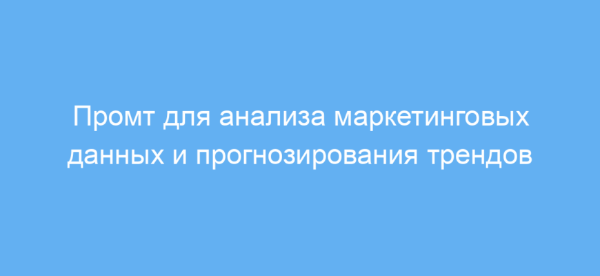 Как работает промт? Вы загружаете маркетинговые данные по конкретной теме или отрасли, а нейросеть на их основе строит аналитическую модель. Она ищет тенденции, сравнивает показатели и связывает их с текущими целями исследования. В итоге вы получаете не просто цифры, а прагматичные прогнозы с примерами для вашего бизнеса или проекта.