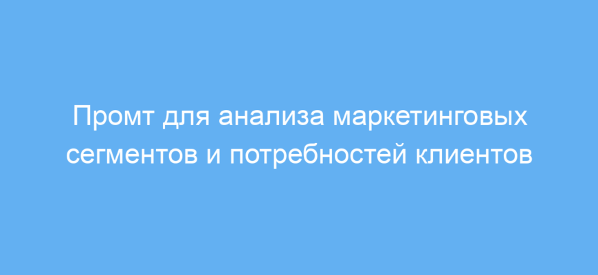 Этот промт предназначен для маркетологов, аналитиков, предпринимателей и специалистов, которым важно понять потребности и предпочтения целевых сегментов рынка. Основная задача промта – помочь получить структурированный маркетинговый анализ на основе актуальных рыночных трендов и поведения потребителей.
