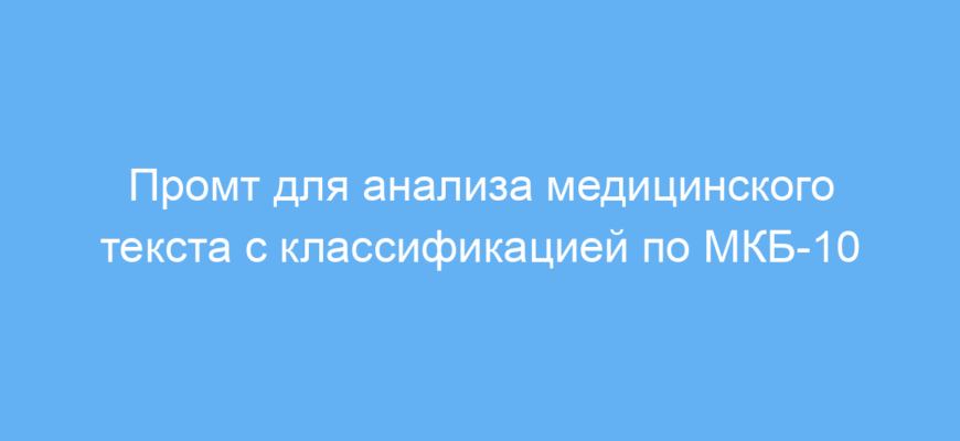 Проблема, которую решает этот промт, — автоматизация разбора медицинских документов: он выделяет предложения и сопоставляет их с правильными кодами МКБ-10. Это облегчает работу с большими объемами текстов, снижает вероятность ошибок в классификации и ускоряет обработку информации.