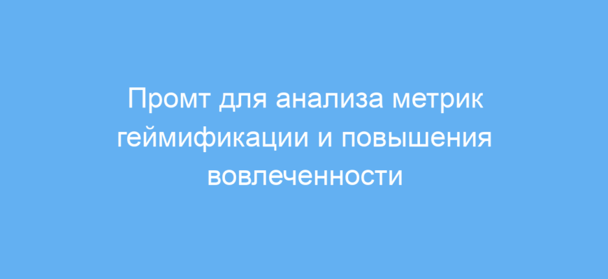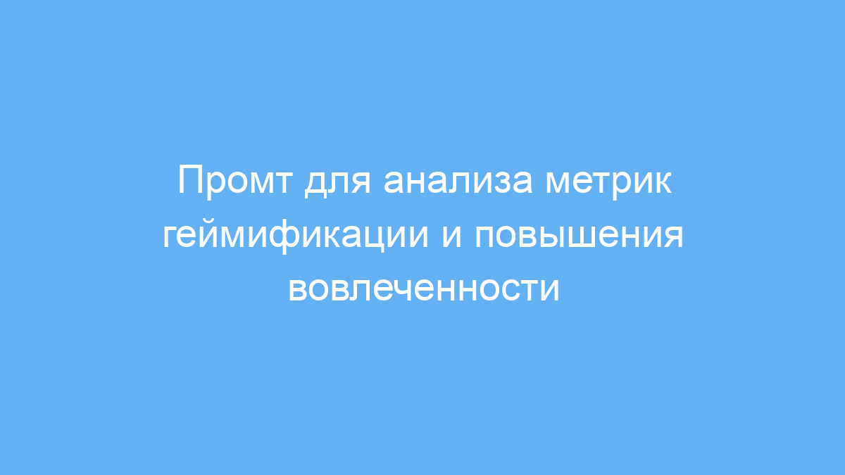 Этот промт предназначен для маркетологов, менеджеров по продукту и бизнес-аналитиков, которые хотят улучшить вовлеченность пользователей и увеличить доходы своего бизнеса. Он помогает быстро создать подробный отчет, анализирующий метрики геймификации — игровые механики, которые повышают интерес и активность клиентов.