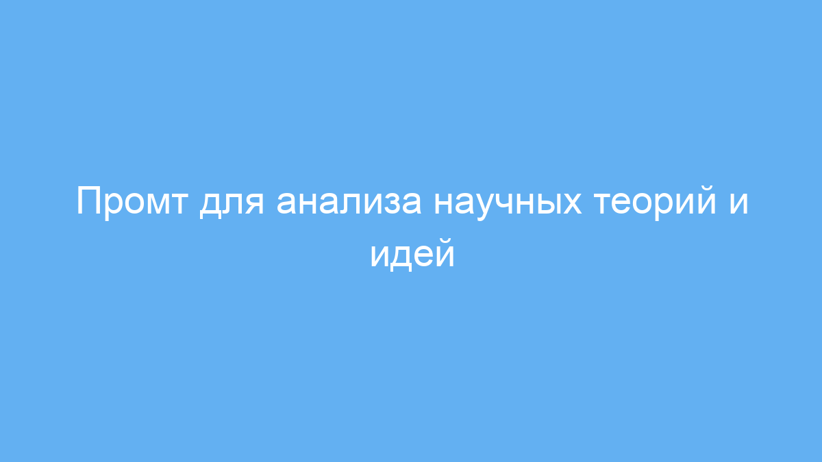 Этот промт поможет быстро получить понятно структурированную и глубокую информацию о любой научной теории или идее. Он облегчает подготовку научных работ, учебных материалов и расширяет общее понимание темы.