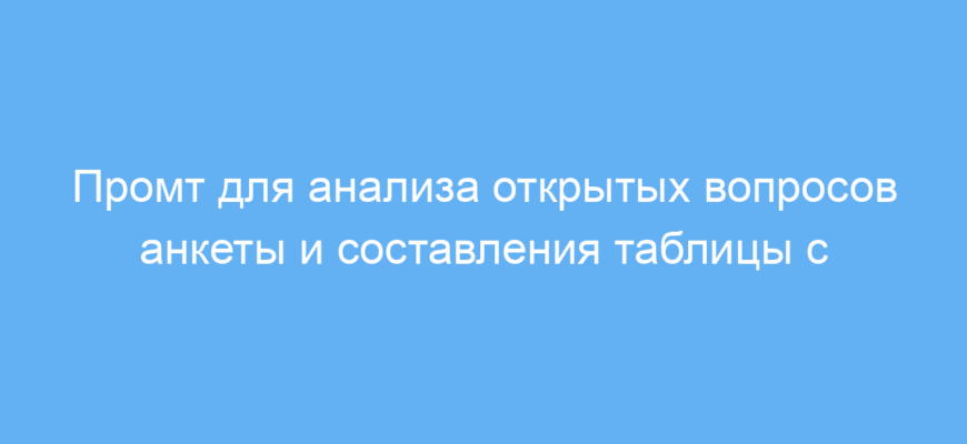 Этот промт экономит время и силы при анализе открытых вопросов анкет. Он структурирует ответы, выделяет важные темы и помогает сделать обоснованные выводы для дальнейших решений. Такой подход облегчает обработку обратной связи и улучшает качество исследований.
