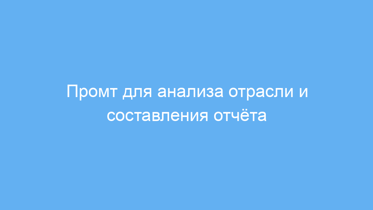 Используя этот промт, вы экономите время и получаете аккуратно структурированный, детализированный аналитический отчёт с обоснованными выводами. Это помогает лучше понять отрасль, оперировать достоверной информацией и принимать взвешенные решения.