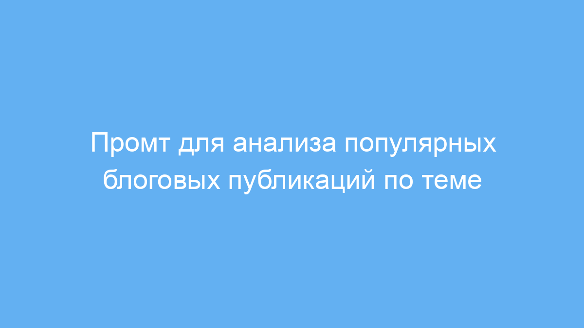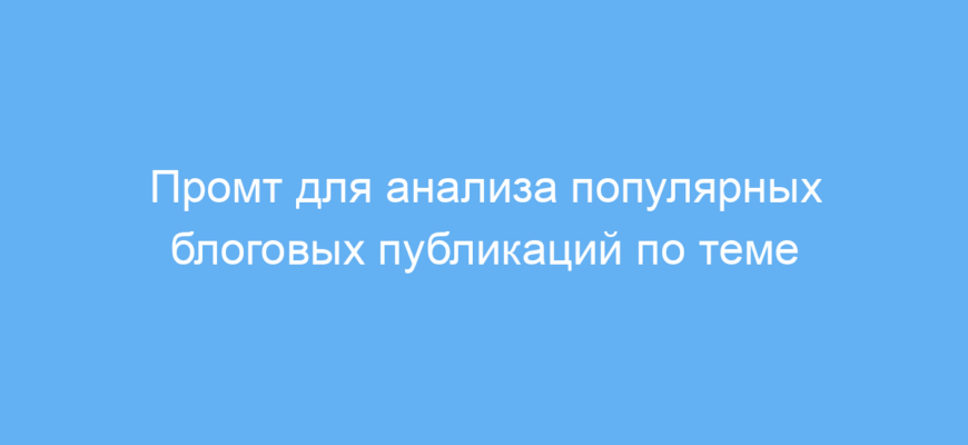 Этот промт предназначен для тех, кто ведёт блог, маркетологов, контент-менеджеров и аналитиков, желающих быстро находить самые популярные публикации по заданной теме за определённый период. С его помощью можно выявить статьи с максимальной вовлечённостью, что полезно для создания собственного контента, планирования стратегий продвижения и понимания интересов аудитории.