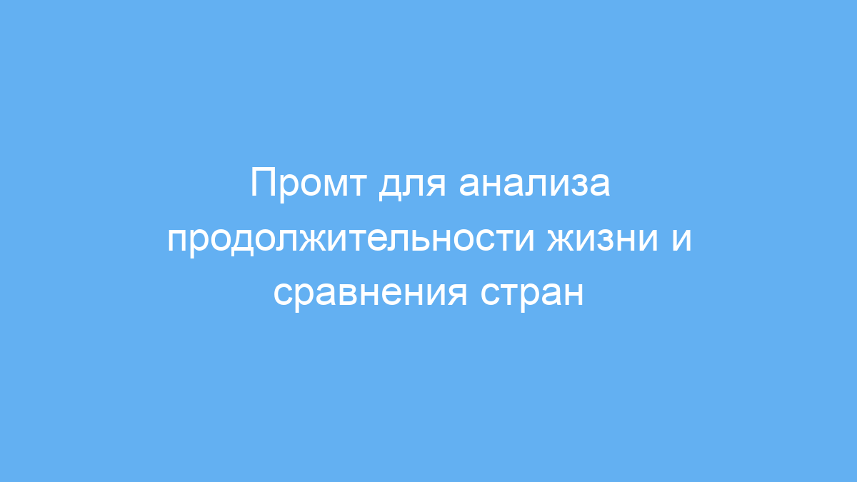 Этот промт предназначен для специалистов и исследователей, которые изучают продолжительность жизни в разных странах. Он помогает быстро получить структурированный анализ, сравнивающий показатели развитых и развивающихся государств, а также выявить причины снижения смертности. Такой подход упрощает подготовку отчетов, статей и презентаций по демографической тематике.