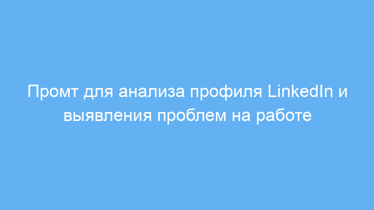 Этот промт предназначен для HR-специалистов, рекрутеров, карьерных консультантов и менеджеров, которые хотят быстро получить общее представление о профессиональном профиле в LinkedIn и понять ключевые сложности, с которыми сталкивается человек на своей текущей должности. Он помогает выявить основные болевые точки в работе, что существенно облегчает оценку кандидата или клиента, а также подготовку рекомендаций.
