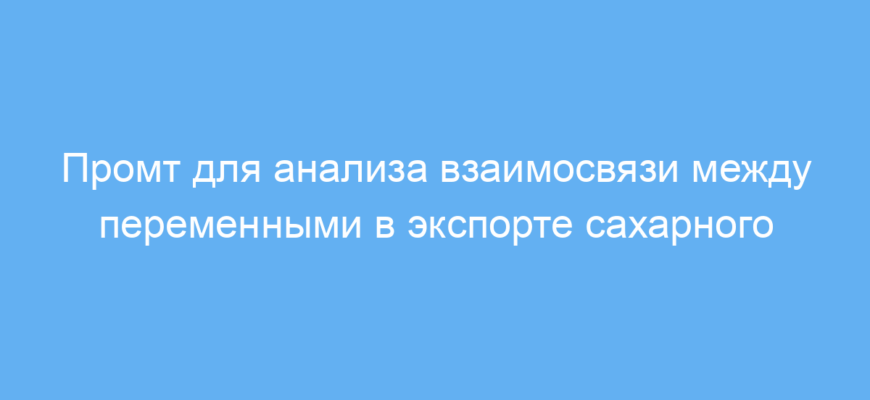 Использование данного промта помогает быстро получить структурированный и понятный анализ взаимосвязи между ключевыми переменными экспорта сахарного тростника. Это экономит время на самостоятельное изучение данных и позволяет концентрироваться на принятии управленческих решений.