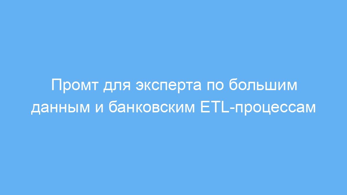 Этот промт помогает быстро получить экспертный, понятный и интересный ответ по большим данным, ETL и банковской теме. Он облегчает подготовку профессиональных материалов и помогает разъяснять сложные темы простым языком с примерами, что экономит время и повышает качество коммуникации.