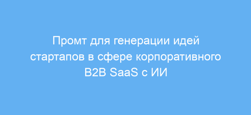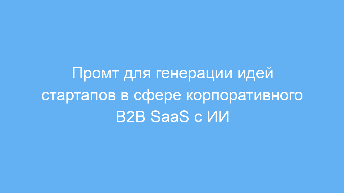 Этот промт предназначен для предпринимателей, стартаперов, специалистов по продукту и консультантов, которые ищут свежие и вдохновляющие идеи для запуска стартапов в области корпоративных B2B SaaS-сервисов. Особенно он полезен тем, кто хочет использовать возможности искусственного интеллекта, избегая при этом тем криптовалют и блокчейна.