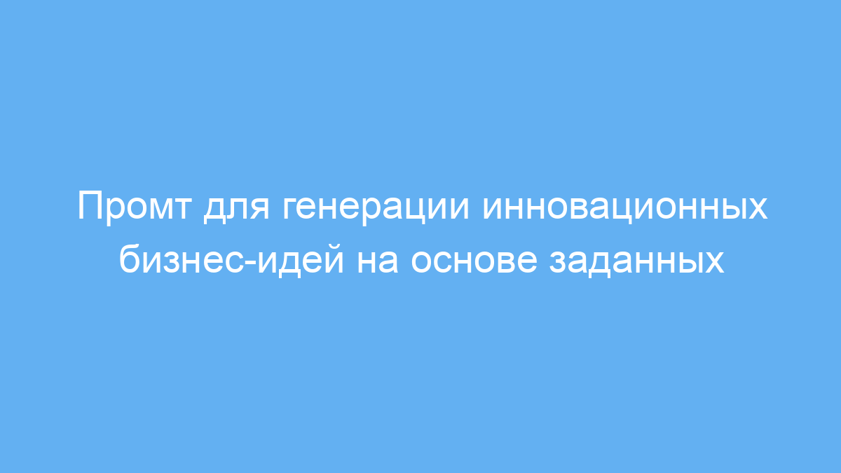 Принцип работы промта прост: пользователь вводит ключевые данные — сферу деятельности, описание целевой аудитории и её предпочтения. На их основе нейросеть анализирует востребованные направления, оценивает реализуемость и уникальность и предлагает список идей с краткими пояснениями. Так вы получаете готовые идеи, учитывающие рынок, что повышает шансы на успех.