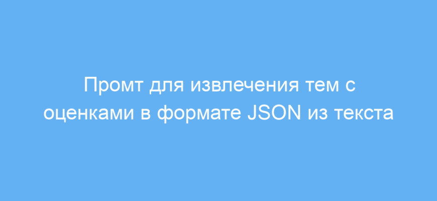 Работает промт следующим образом: он берёт исходный текст, анализирует его содержание, выделяет ключевые темы и присваивает каждой теме численную оценку или рейтинг. В результате получается структурированный JSON-объект, который просто использовать в дальнейших анализах или интегрировать с другими системами.