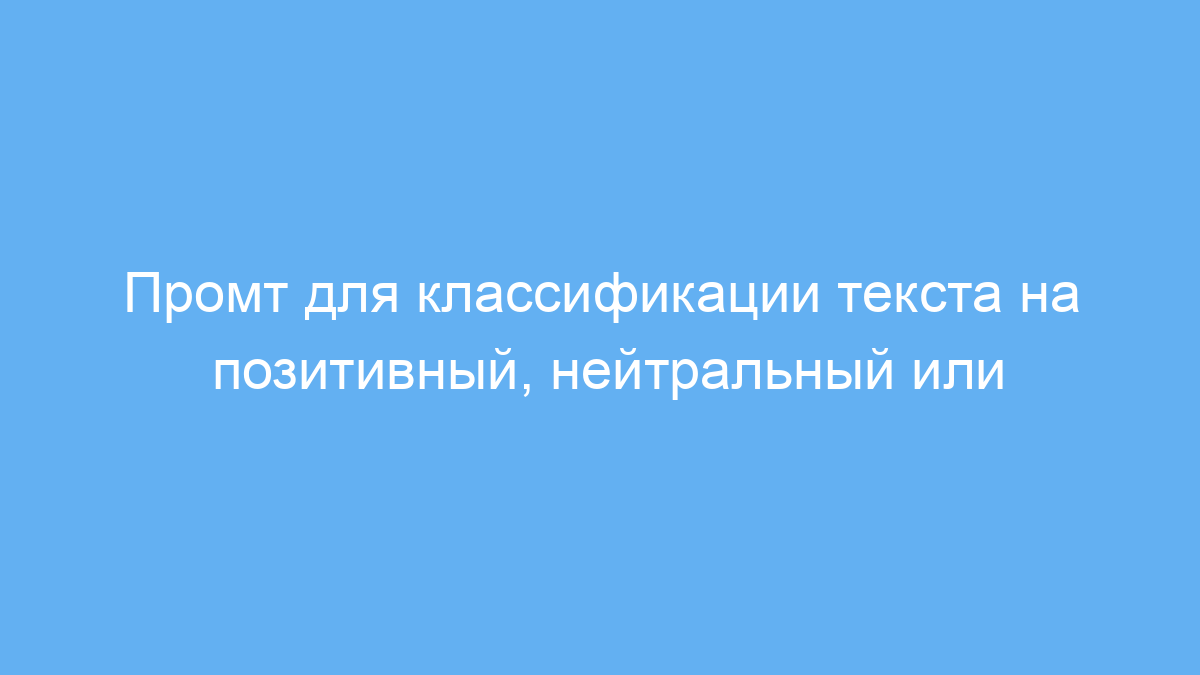 Проблема, которую решает промт, — автоматическое определение настроения текста. Это помогает быстро анализировать большие объёмы информации и принимать решения на основе эмоций аудитории. Например, понять, положительный ли отзыв у клиента или негативный.