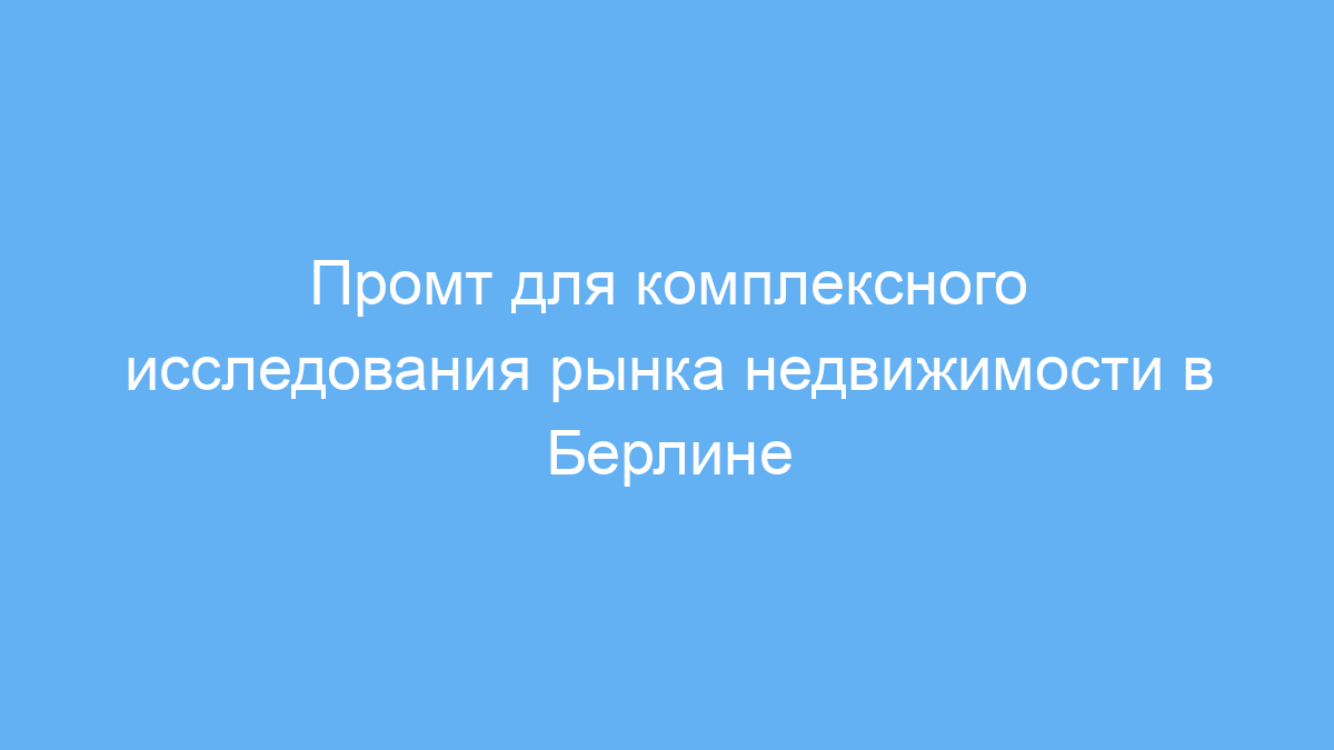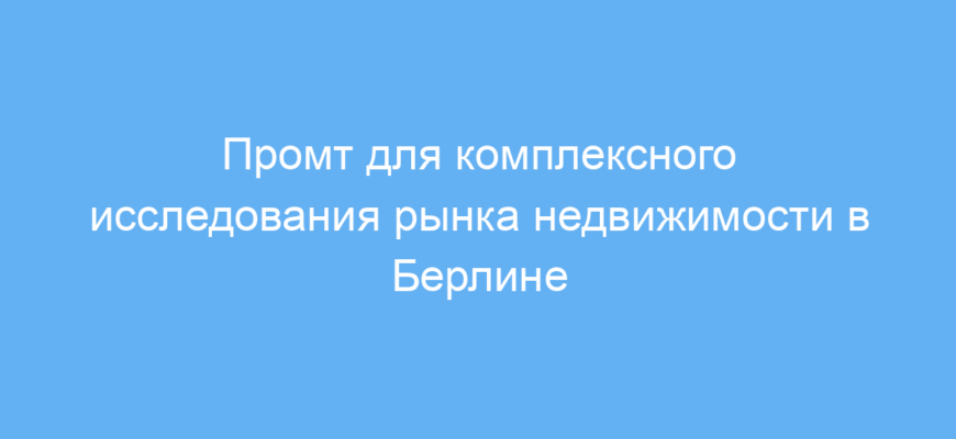 Этот пример показывает, как промт поможет провести полное исследование для инвесторов недвижимости, желающих понять рынок в Берлине и принять инвестиционное решение.