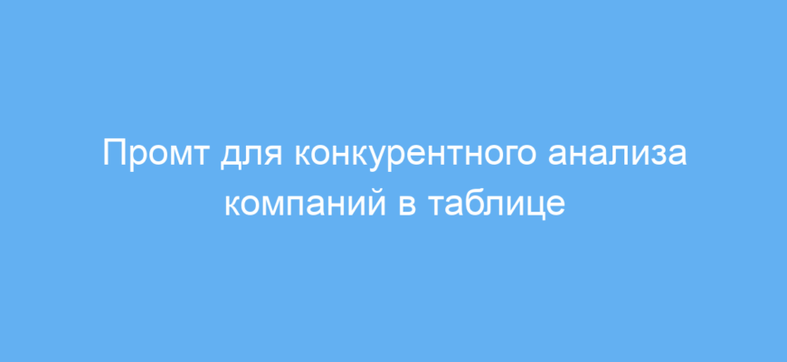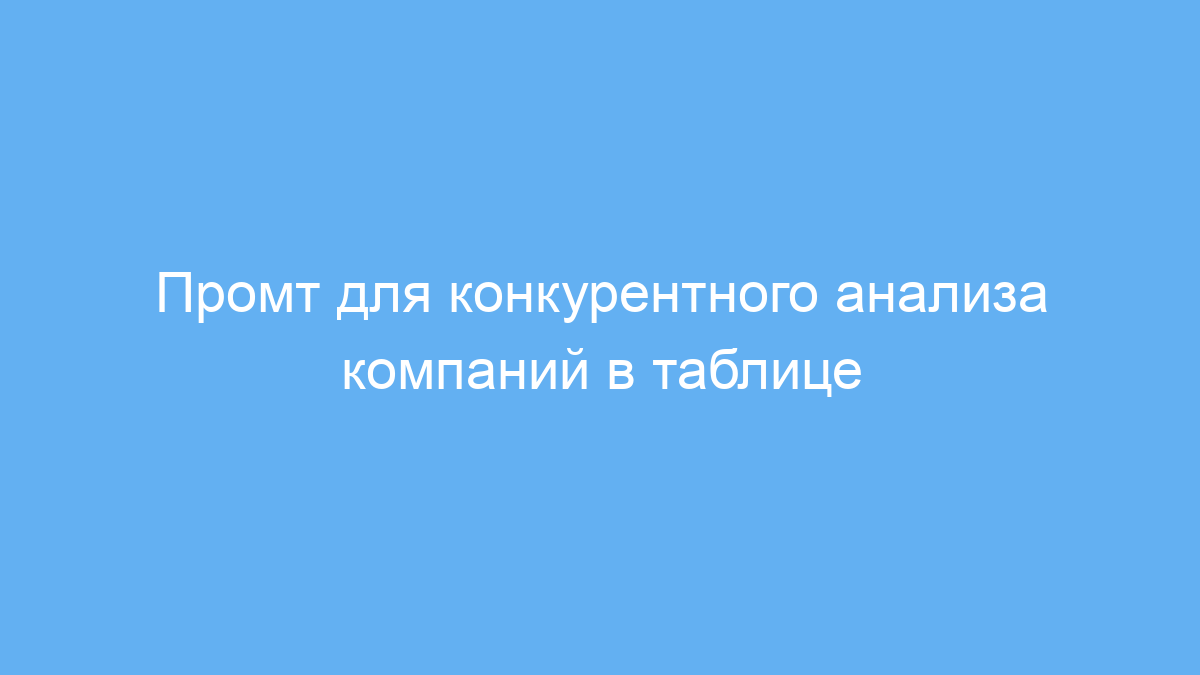 Промт помогает быстро систематизировать и визуализировать конкурентную информацию. Вы сэкономите время на поиске и обработке данных, получите ясное представление о структуре рынка и сможете эффективнее строить стратегию развития.