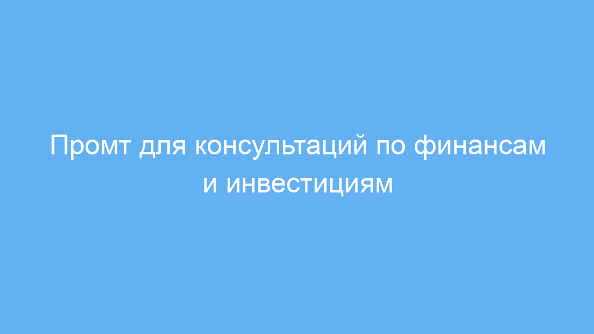 Промт позволяет быстро получить профессиональные советы по финансам и инвестициям. Он помогает понять основные принципы управления деньгами, ориентироваться в современных трендах и принимать взвешенные решения без необходимости долгих самостоятельных поисков. Это экономит время и даёт уверенность в финансовых шагах.
