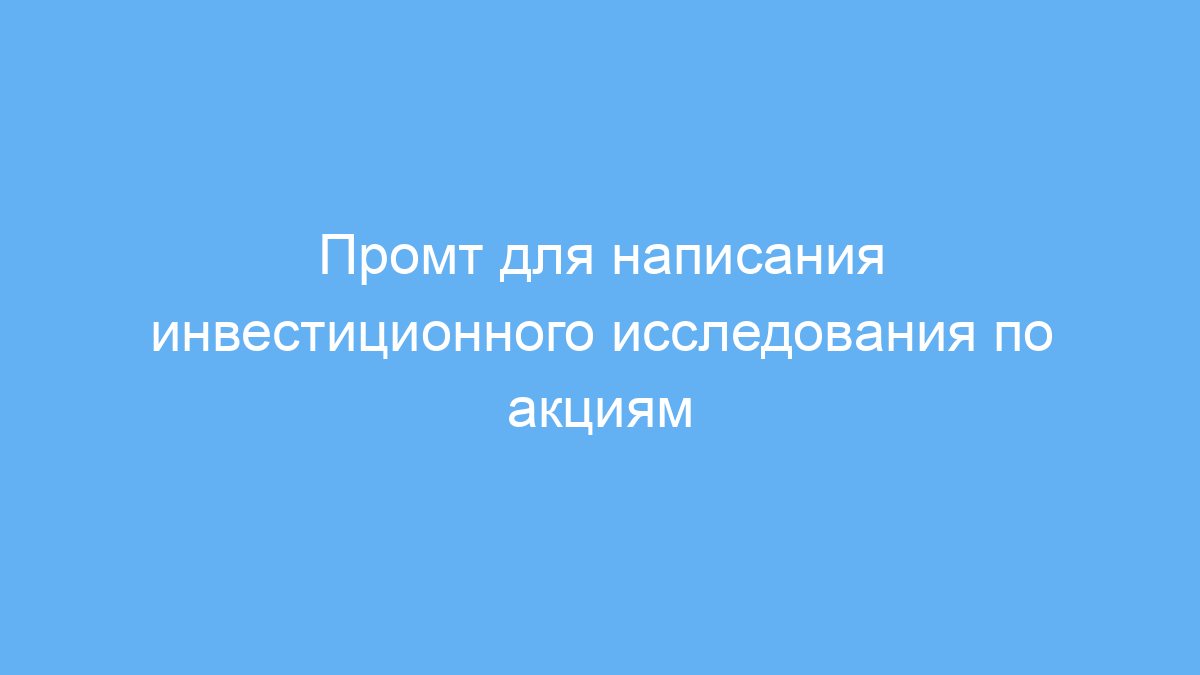 Используя этот промт, вы быстро получаете всесторонний и структурированный анализ акций. Это экономит время на сбор информации и помогает принимать более обоснованные решения в инвестициях.