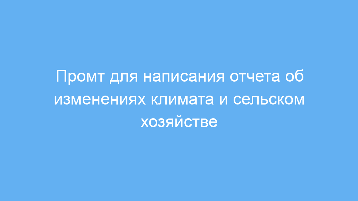 Принцип работы промта прост: нейросеть получает задачу написать отчет о влиянии неожиданных климатических изменений на сельское хозяйство с нужной грамматической и стилистической формой, а также с требуемой структурой, что позволяет получить связный и логичный текст с первого раза.