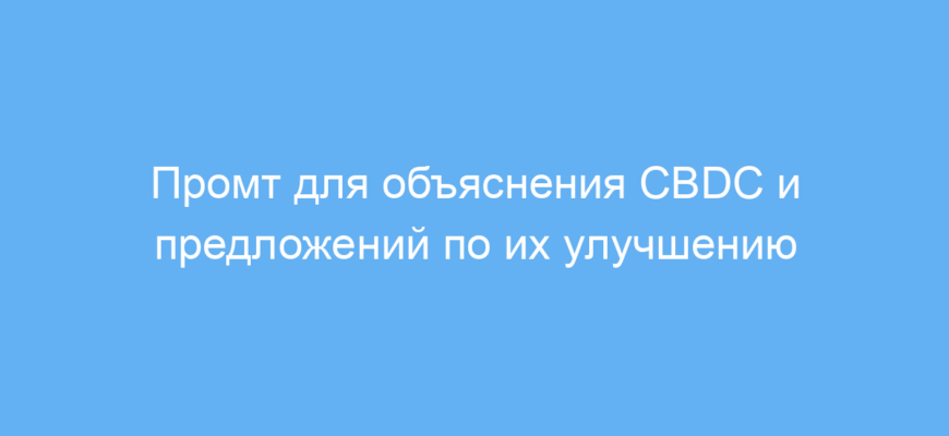 Промт работает так: пользователь задает систему вопроса о CBDC и методах их улучшения, а нейросеть генерирует содержательный, простым языком написанный ответ. Это избавляет от необходимости искать информацию в разрозненных источниках и помогает сэкономить время при изучении темы.