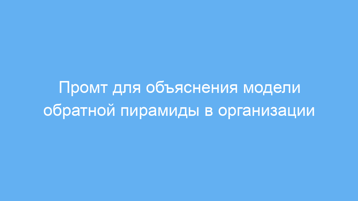 Этот промт предназначен для специалистов в области управления, студентов, а также для всех, кто интересуется современными подходами в построении организационных структур, включая темы криптовалют, DAO и DeFi. Он помогает разобраться в концепции модели обратной пирамиды, где компания строится вокруг клиентов, а не жесткой иерархии или внутренних процессов.
