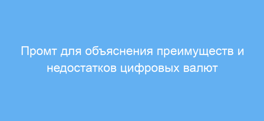 Пример 1. Помощь студенту при изучении цифровых валют. Промт помогает получить базовые знания и практическое понимание тем для экзамена или курсовой работы.