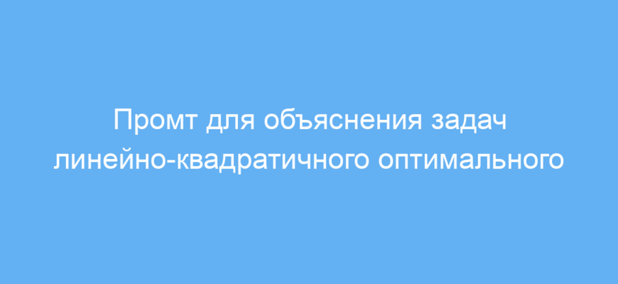✅ Задачи линейно-квадратичного оптимального управления (ЛКОУ) решают задачи выбора управляющего воздействия, минимизируя квадратичную функцию потерь с учётом линейной динамики системы. В контексте генерации AI-промтов такой подход помогает формализовать выбор оптимальных параметров промта, обеспечивая баланс между качеством результата и затратами вычислительных ресурсов. Новые методы включают адаптивную настройку промтов на основе обратной связи от модели и интеграцию многошагового оптимального управления для последовательной генерации текста с улучшенной связностью и релевантностью. Это позволяет создавать более точные и эффективные инструкции для нейросетей, повышая качество генерации контента.