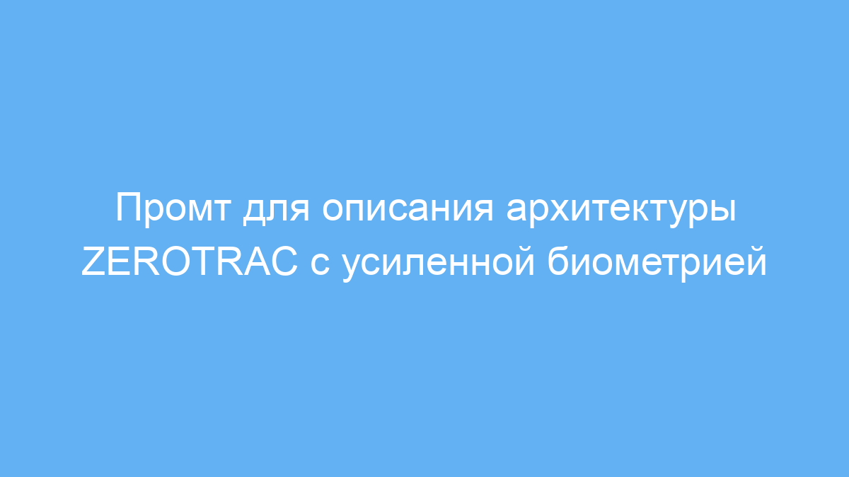 Этот промт предназначен для специалистов по информационной безопасности, IT-аналитиков, технических писателей и менеджеров проектов, которые хотят подробно и понятно описать концепцию ZEROTRAC — биометрически усиленной архитектуры Zero Trust. Использование промта поможет быстро и структурировано раскрыть ключевые принципы модели, преимущества и этапы внедрения.
