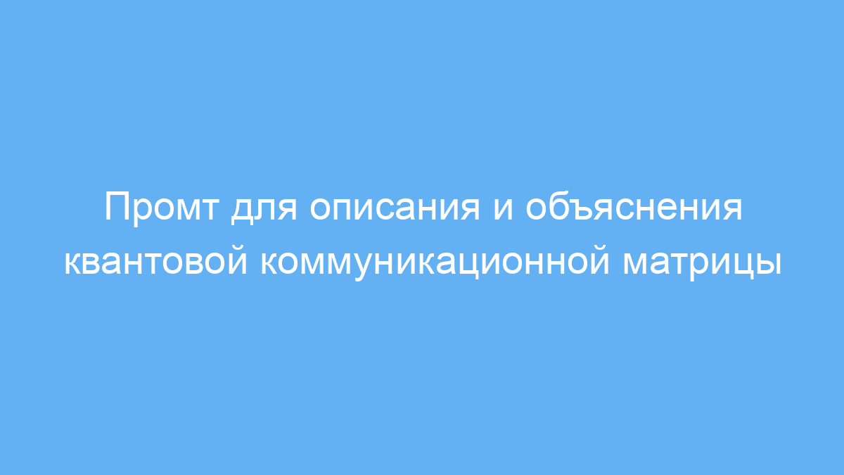 Этот промт предназначен для специалистов, студентов и исследователей в области квантовой коммуникации и квантовых технологий. Он помогает получить понятное и структурированное описание основных принципов работы квантовой коммуникационной матрицы PEARL, а также объяснить фундаментальные элементы и их взаимосвязи.