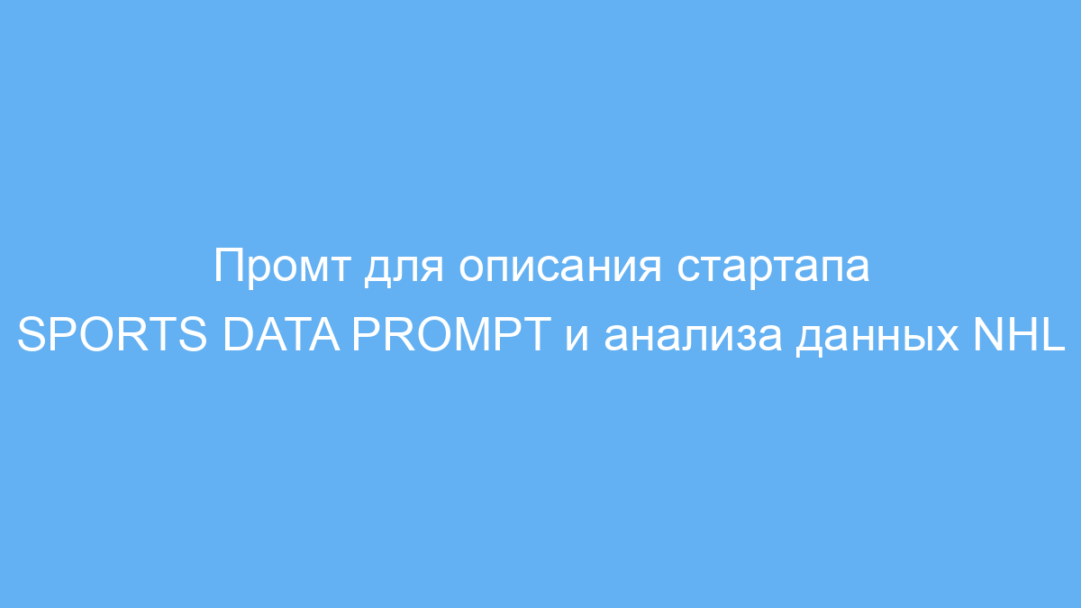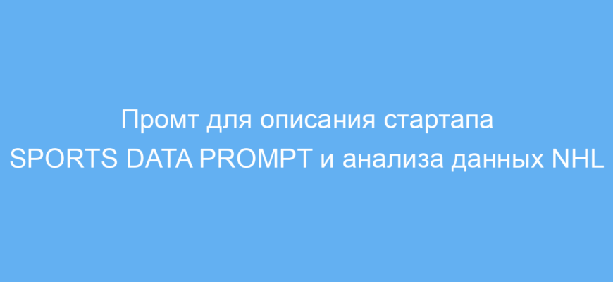 Этот промт предназначен для тех, кто занимается анализом данных, ставками на спорт, а также для сообщества, интересующегося статистикой Национальной хоккейной лиги (NHL). Он помогает легко и быстро получить структурированное описание стартапа SPORTS DATA PROMPT — платформы для объединения любителей спортивных данных, ставок и аналитики NHL.