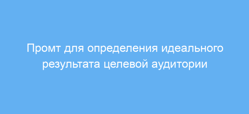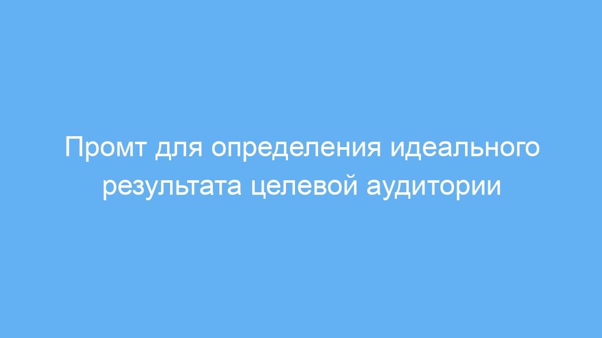 Данный промт помогает быстро и чётко сформировать представление об идеальном результате для конкретной целевой аудитории. Это экономит время на анализ и позволяет создавать более релевантные предложения, повышая качество маркетинга и взаимодействия с клиентами.